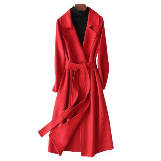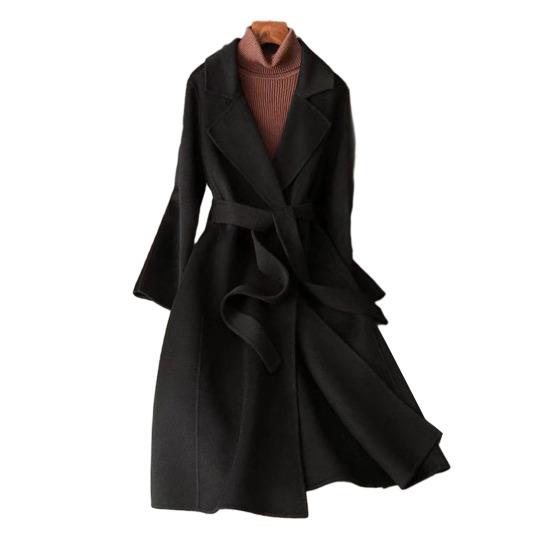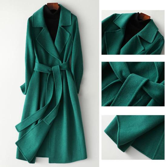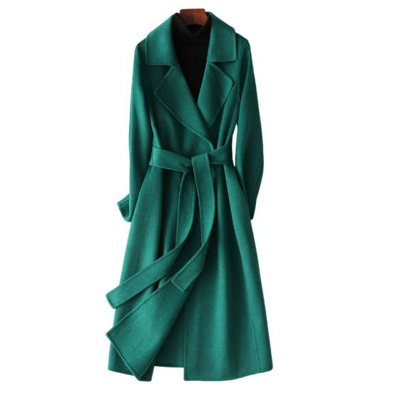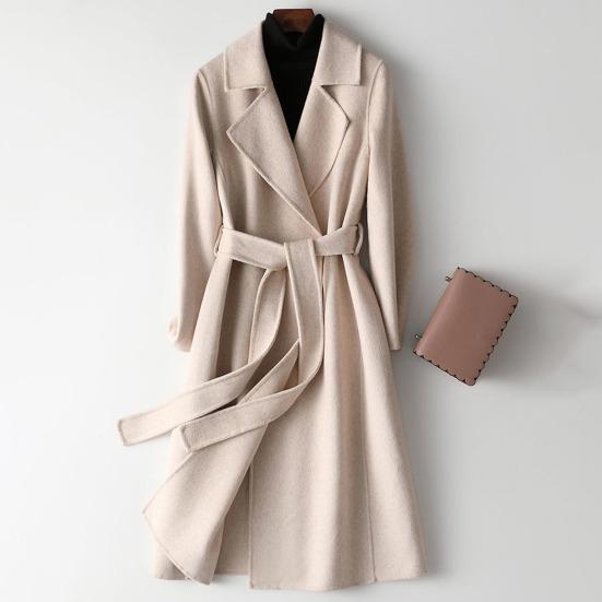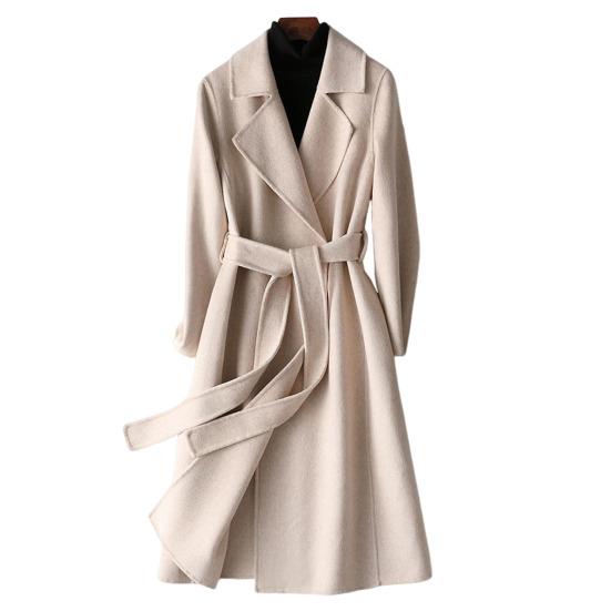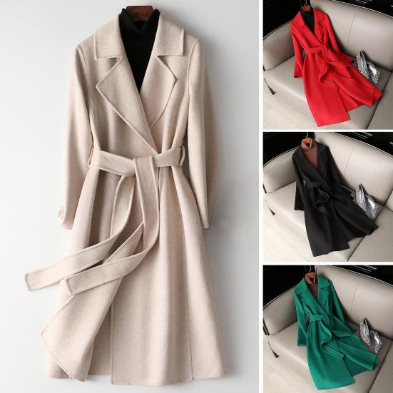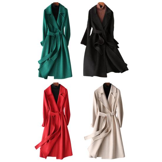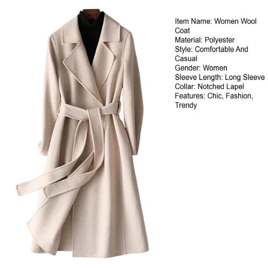 Женское длинное шерстяное двубортное пальто с лацканами с вырезом, тренч с открытой передней частью, приталенное, теплое пальто на осень-зиму с поясом