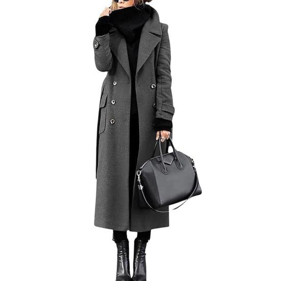 Элегантный удлиненный дизайн: Этот тренч длиной макси с лацканами и длинными рукавами создает структурированный силуэт, который льстит разным типам фигуры.. Свободный крой талии добавляет комфорта и свободы движений, сочетая простоту с изысканным шармом.