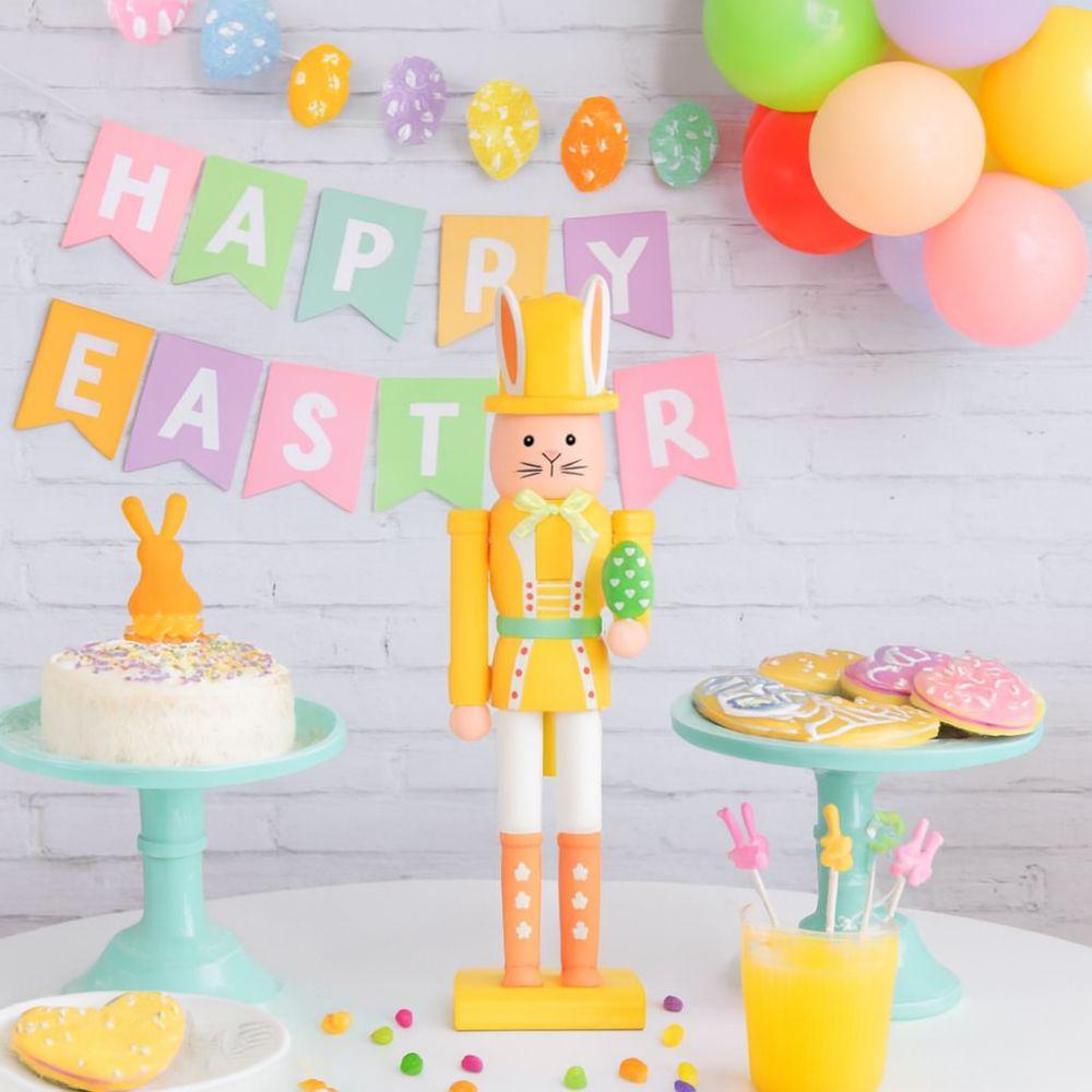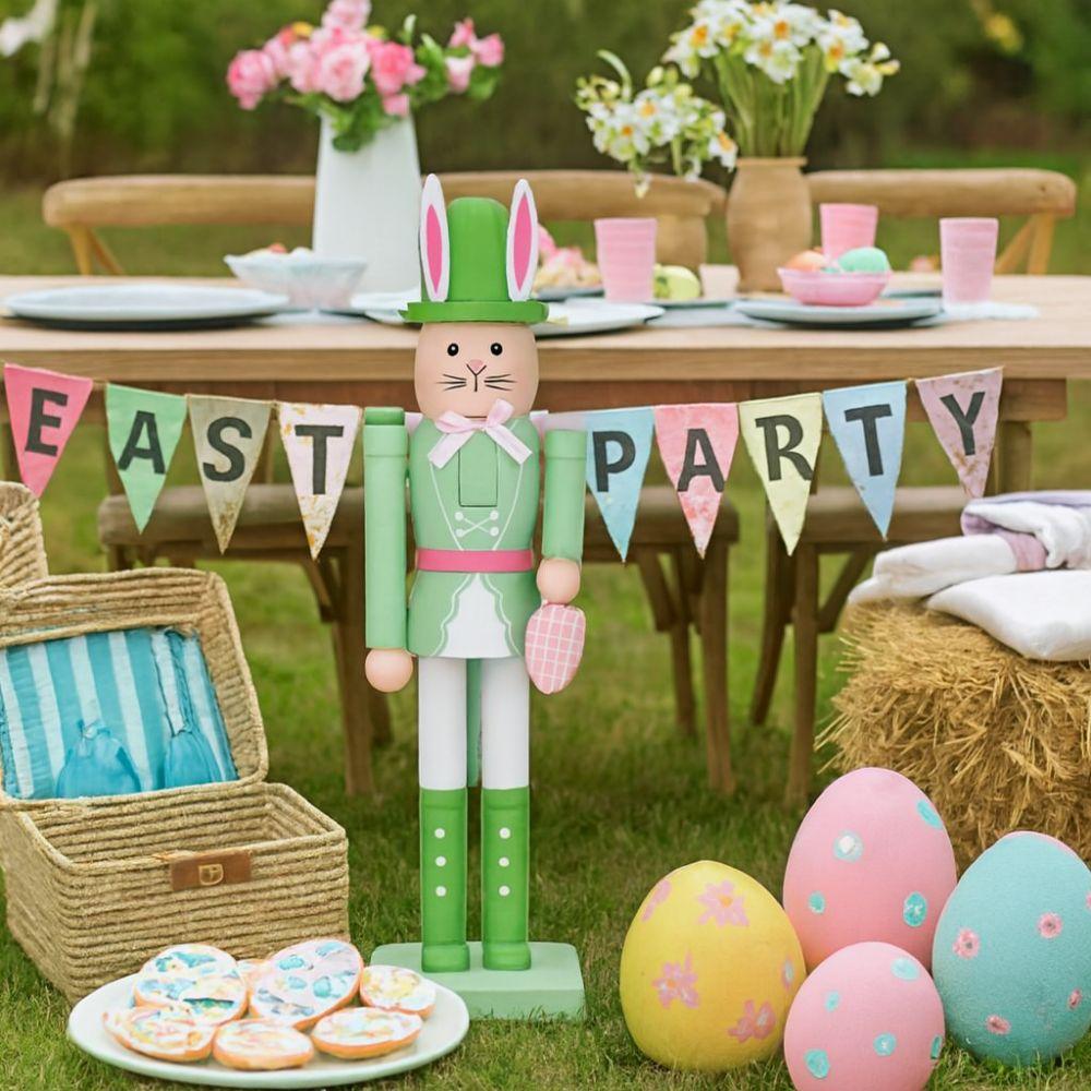 Cute Wooden Rabbit Statue Realistic Bunny Nutcracker Easter Rabbit Nutcracker Indoor Living Room