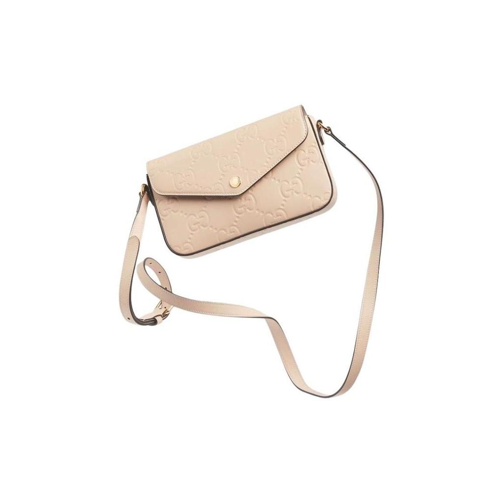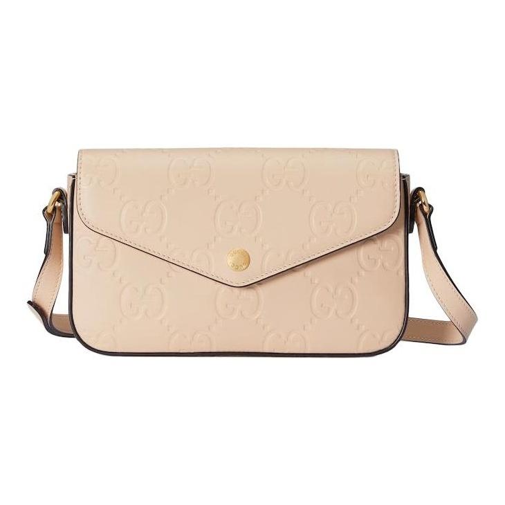 GUCCI double G logo adjustable shoulder strap magnetic buckle opening and closing leather messenger bag women's light beige