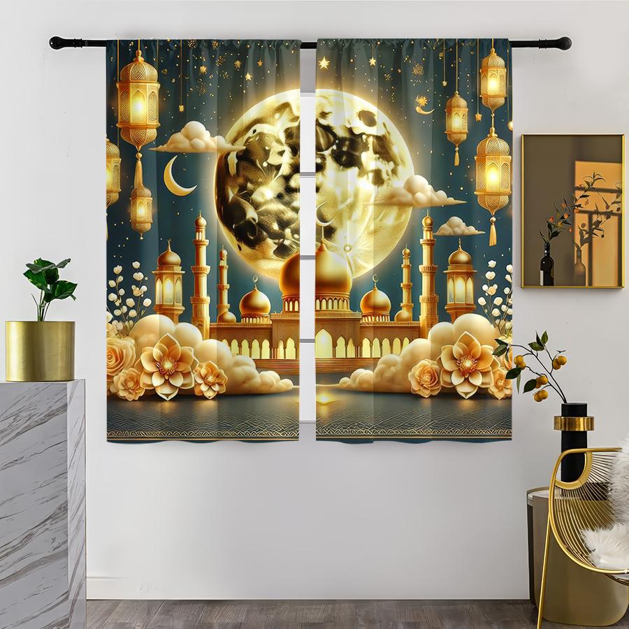 2PCS Gilded Moonnight Islamic Festival Curtains Luxury Style Bedroom and Living Room Drawbar Pocket Decoration