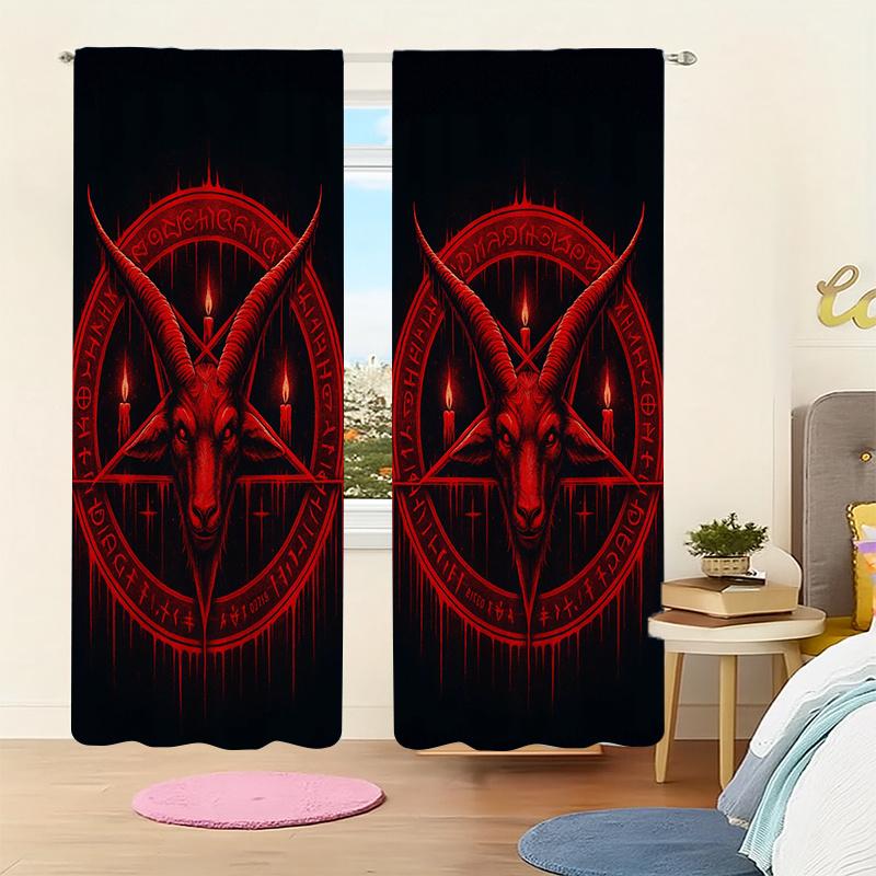 2 шт. Готские Блэкаут Шторы Сатанинская Пентаграмма и Красная Голова Козла Светофильтрующие для Спальни Гостиной и Офиса Темный Стиль Декора