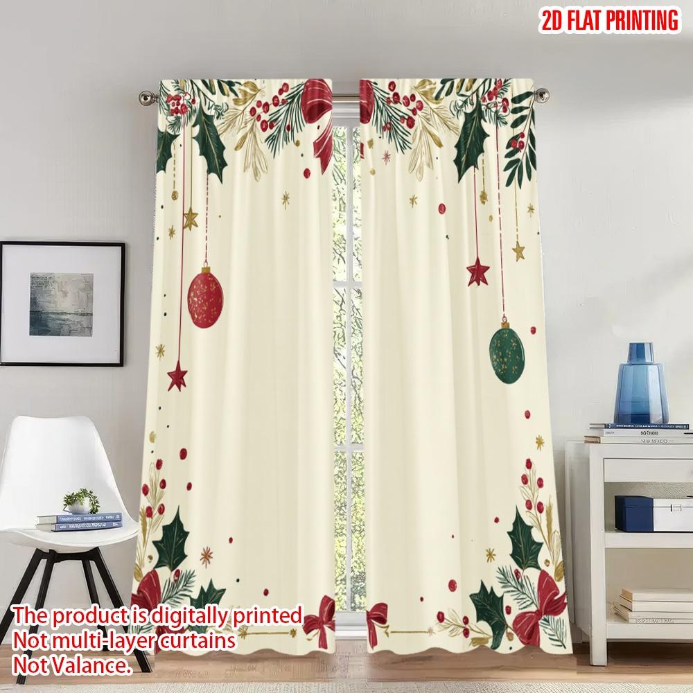 2pcs 2D flat printing Merry Christmas Curtains Christmas Holly Garland Bows Ornaments Digital Printed Polyester Drapes Festive