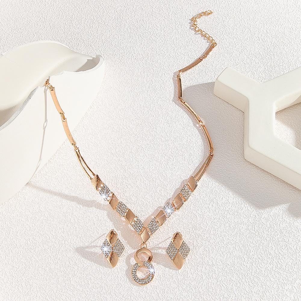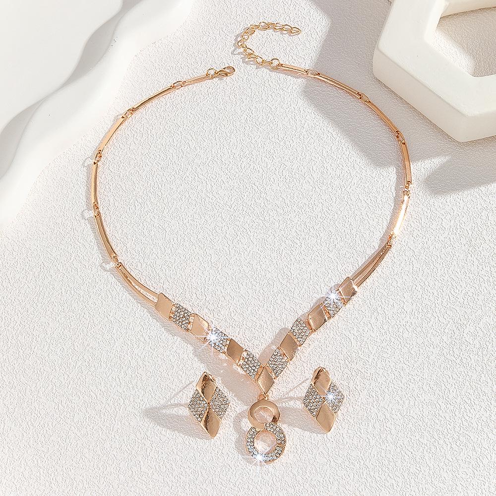 Европейский и американский набор колье и серег из цинкового сплава золотистого тона со стразами в виде знака бесконечности