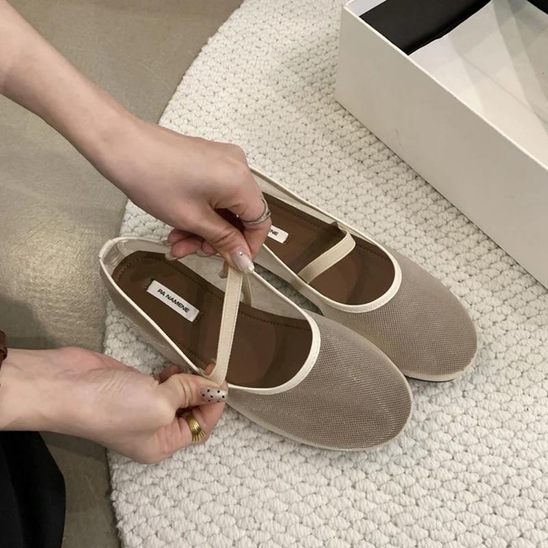 Дизайнерские осенние женские балетки из сетчатой ткани на плоской подошве, модные неглубокие эластичные женские удобные туфли Мэри Джейн на мягкой подошве