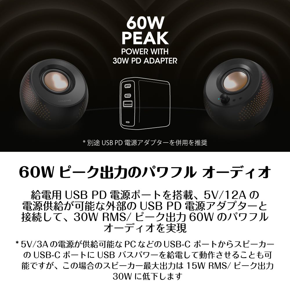 Creative Pebble X PC Speakers (SP-PBLX-BK) with Large RGB Lighting, 2.75-inch Driver, USB PD Port, 30W RMS/60W Peak Output