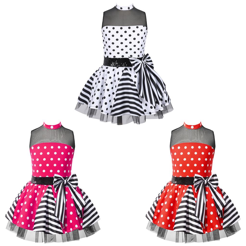 Детская стильная одежда для девочек, сетчатое платье-пачка без рукавов в стиле пэчворк с принтом в горошек, сетчатое танцевальное платье — купить товар онлайн с бесплатной доставкой по всему миру!