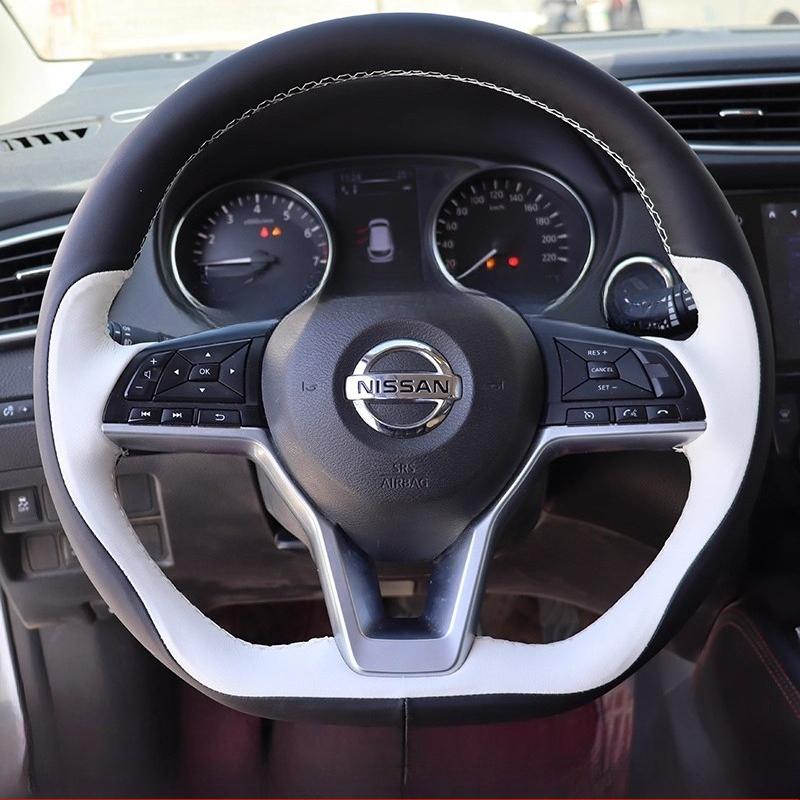 Hand Stitched non-slip black white Leather Car Steering Wheel Cover For Nissan X-Trail Qashqai Rogue (Sport) 2017-