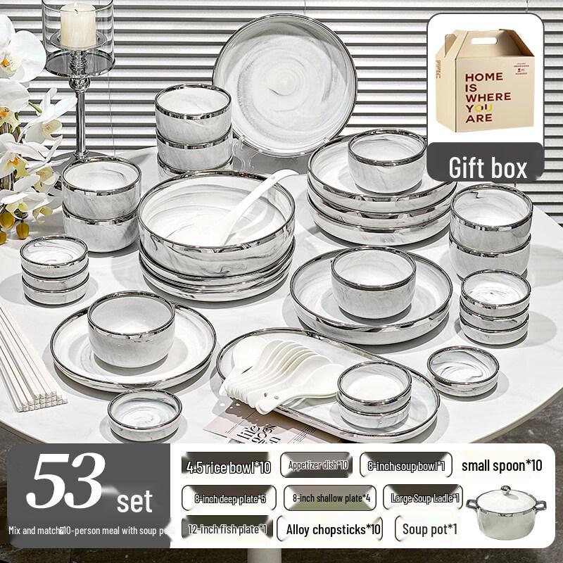 Набор столовой посуды Wandao из 53 предметов, мраморная керамика