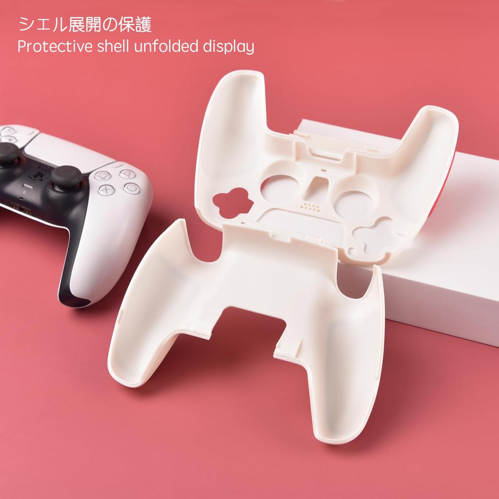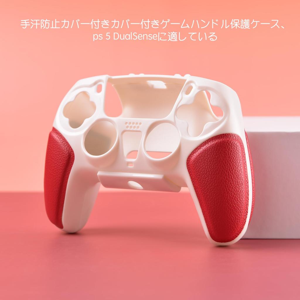 BCOTE Protective Case for PS5 DualSense Hard Shell Cover with Leather Design Red Protective Controller, Grip, Sweat-Resistant (White + Shell)