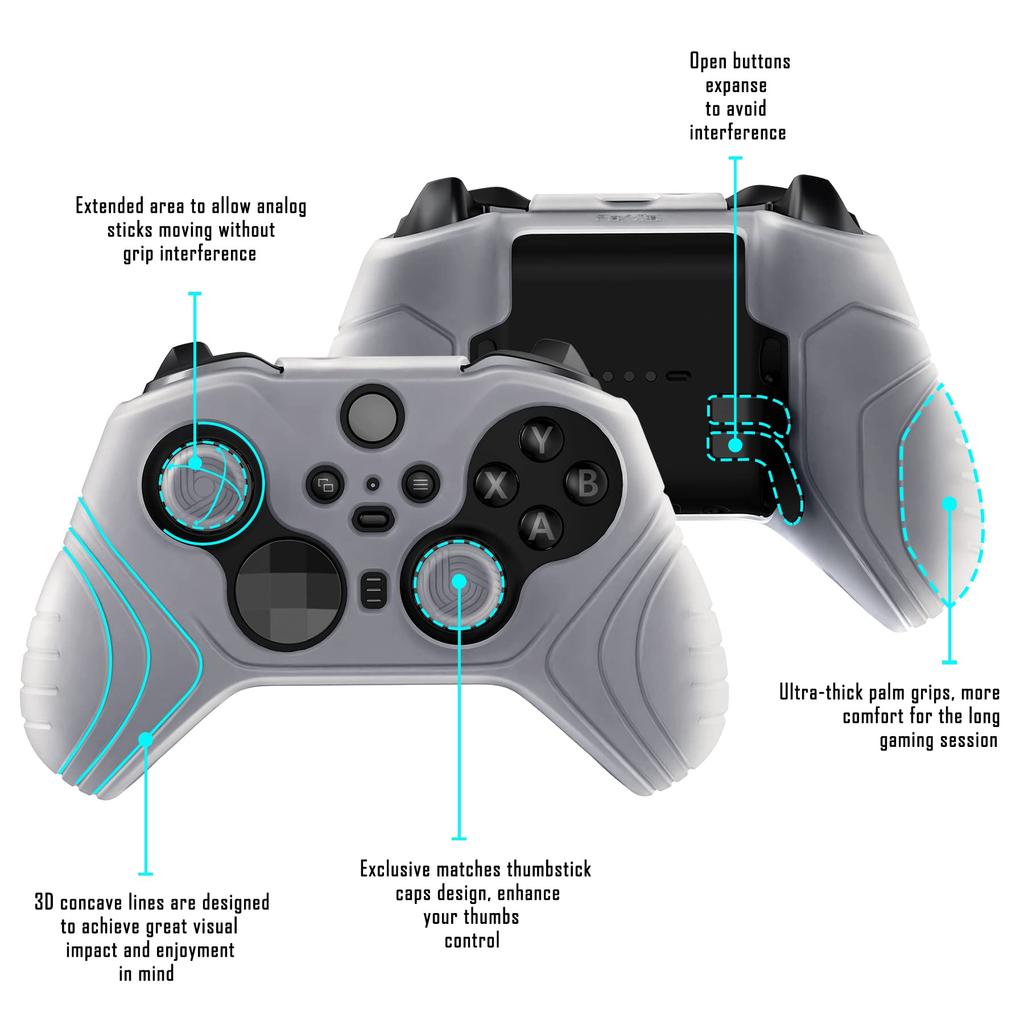 Защитный чехол PlayVital для беспроводного контроллера Xbox Elite Series 2 включает в себя мягкую резиновую накладку и накладки на колпачки стиков Core, (Ясно Белый)