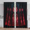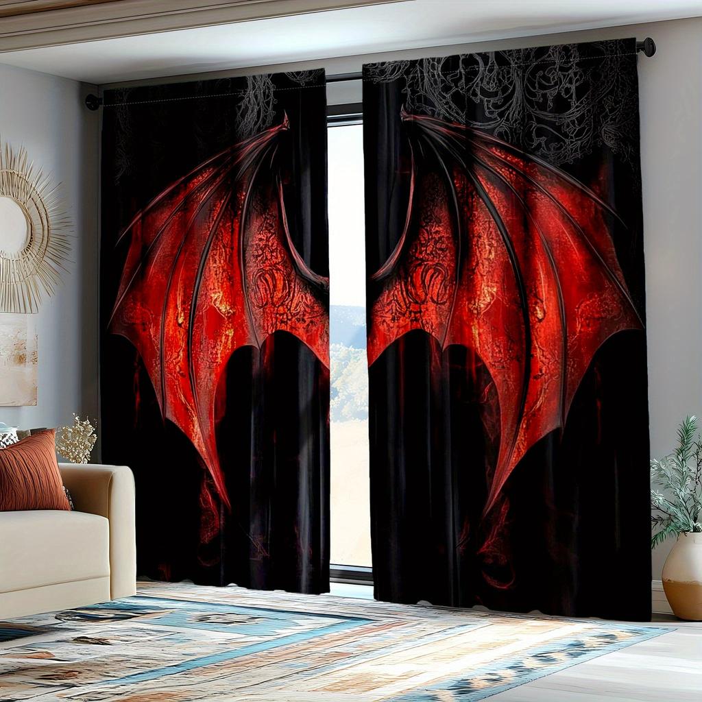 2pcs Gothic Red Bat Pattern Curtains Semi-Transparent Polyester Drapes with Intricate Black Design for Bedroom & Living Room De