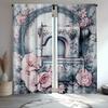 2pcs Vintage Sewing Machine Blackout Curtains Colorful Floral Print Rustic Rod Pocket Drapes for Bedroom & Living Room Semi-T