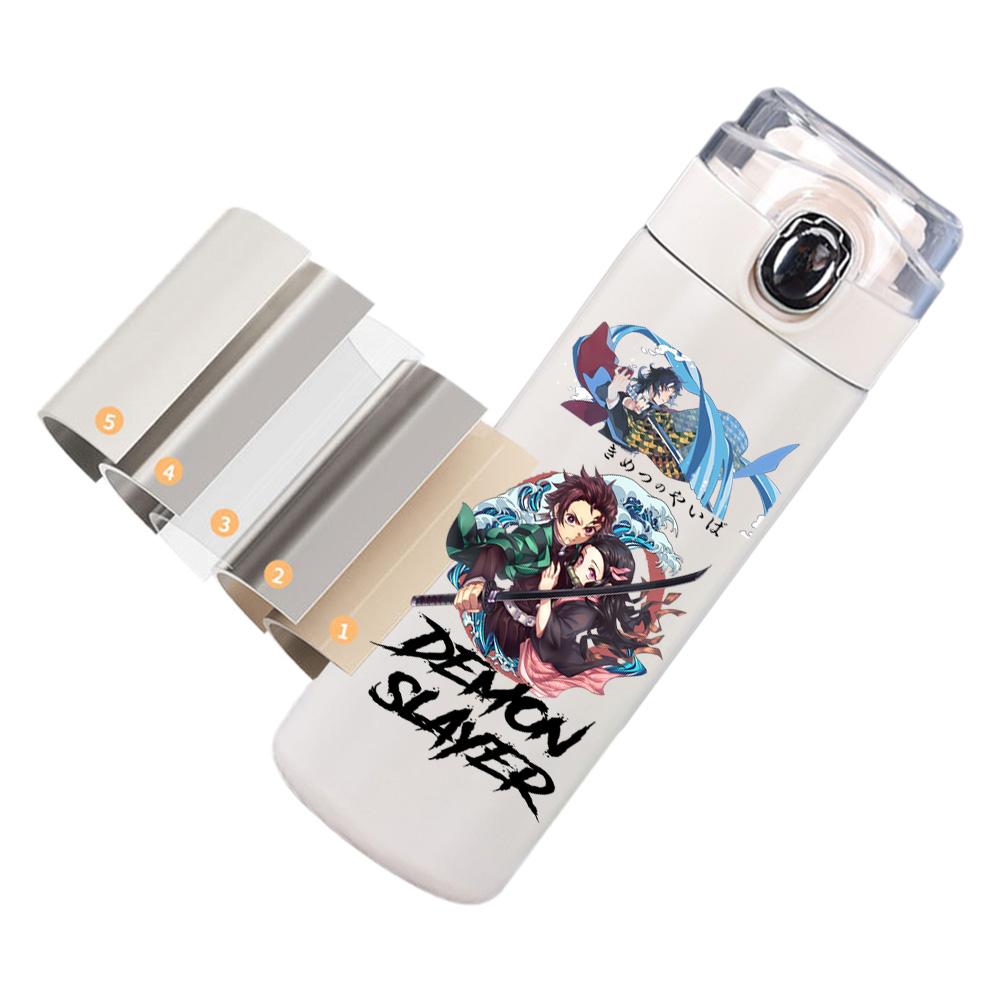 Белая термокружка с принтом «Клинок, рассекающий демонов», портативная, из нержавеющей стали, 400 мл, герметичная, для кемпинга, подарок
