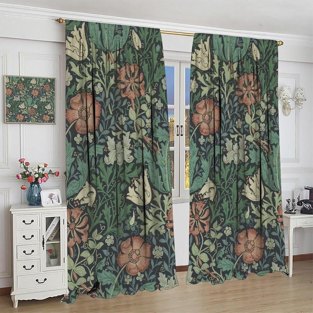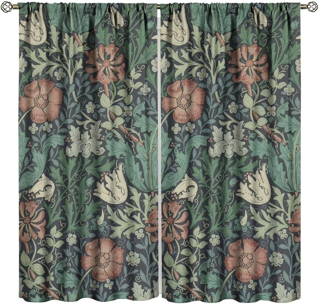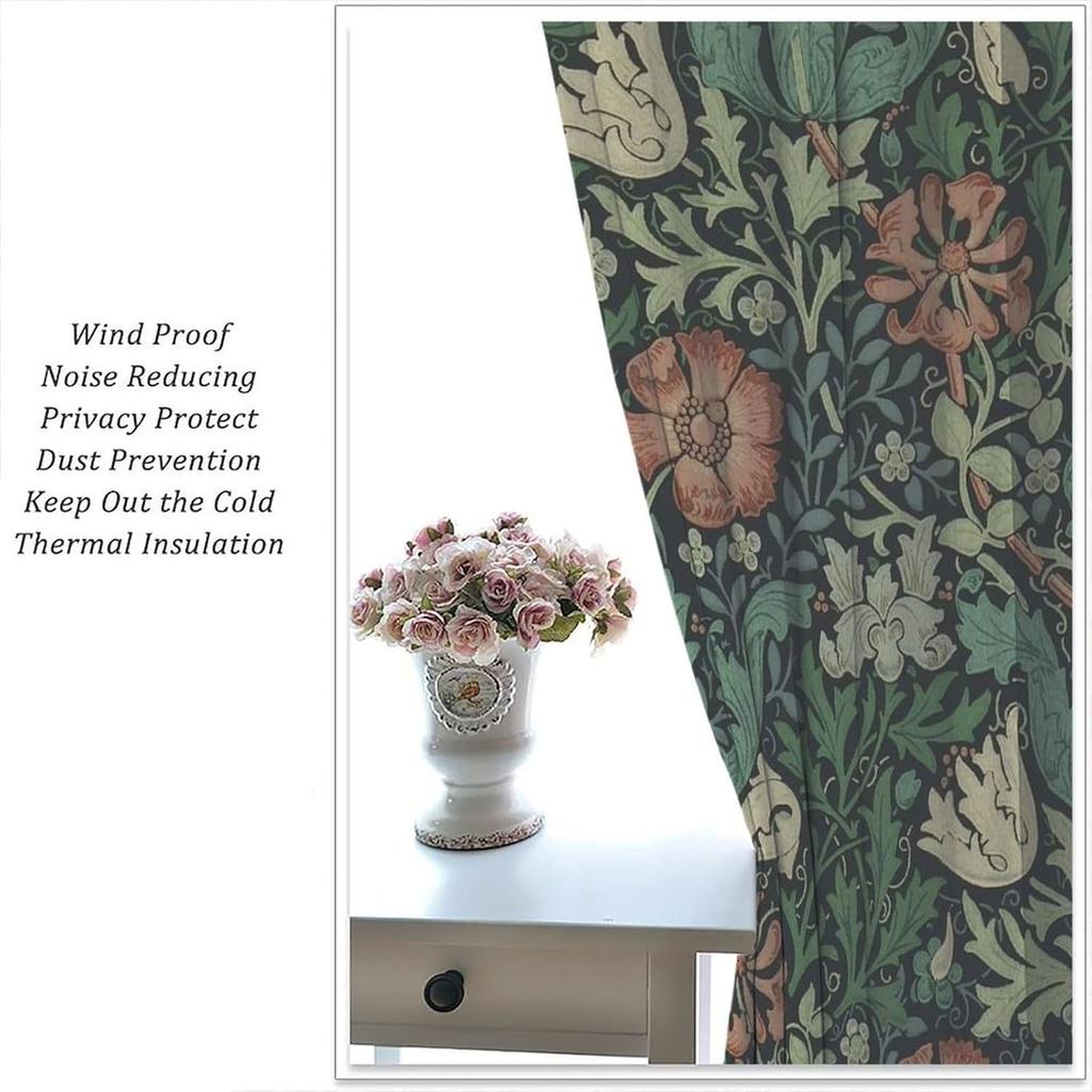 William Morris Flower Blackout Window Curtains Bohemia Floral Vintage Window Drapes for Living Room Bedroom 21(W)*45(L) 2 Pane