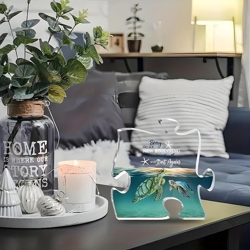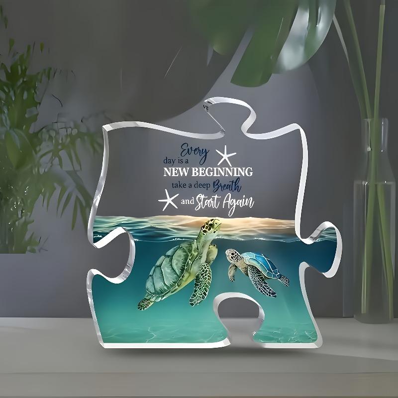 2D Flat "Every Day Is A New Beginning" Puzzle-Shaped Acrylic Decorative Plaque, Sea Turtle & Starfish Design, Suitable for Wall Decoration, Porch, Roo