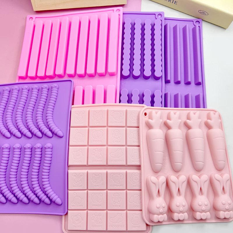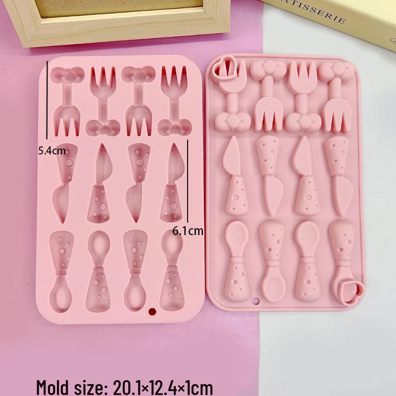 12-гнездовая плетеная волнистая форма для желейных конфет в виде длинной полоски, форма для мусса и пудинга в виде карандаша, ножа и вилки, панды