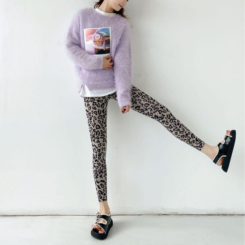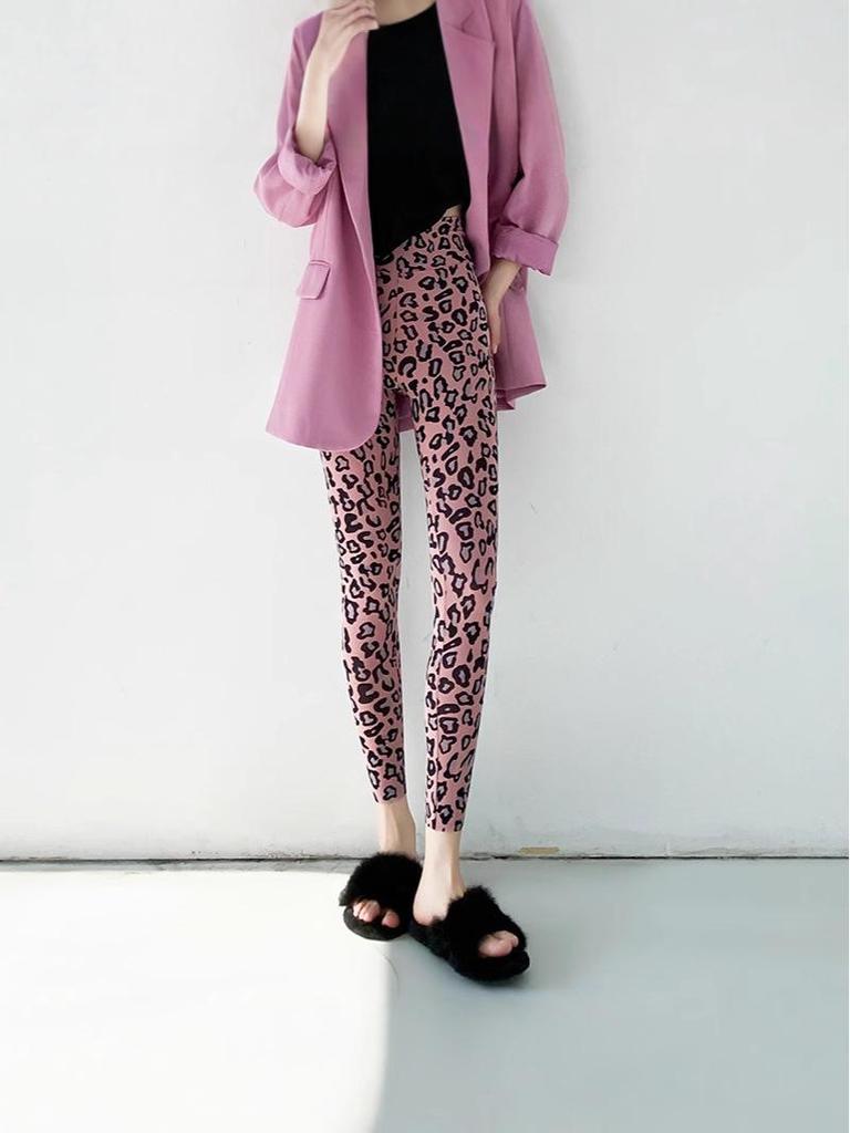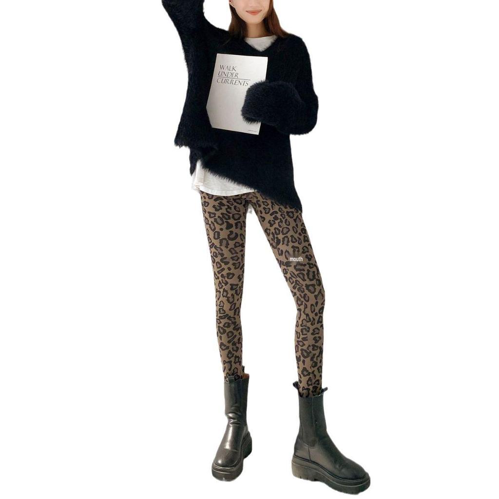 695 Осень/Зима Леопардовый Принт Искусственный Кашемир Акулий Крой Леггинсы - Теплые, Утолщенные, Корейский Стиль Стройнящие Девятиточечные Брюки
