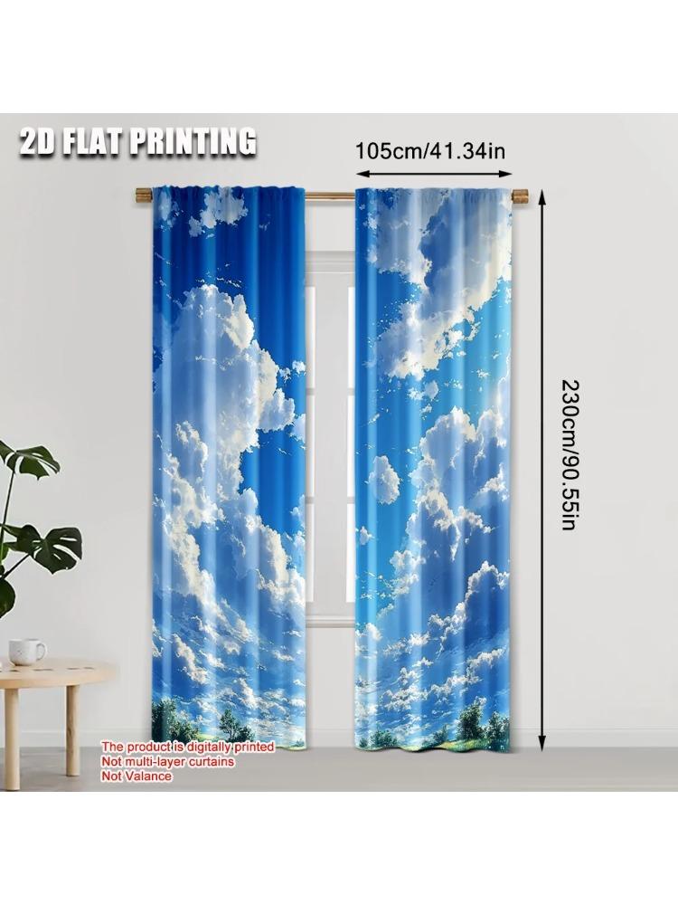 2pcs Curtains print Blue Sky White Clouds Machine Washable (without rod) Home Decor Use for Bedroom Living Room Office