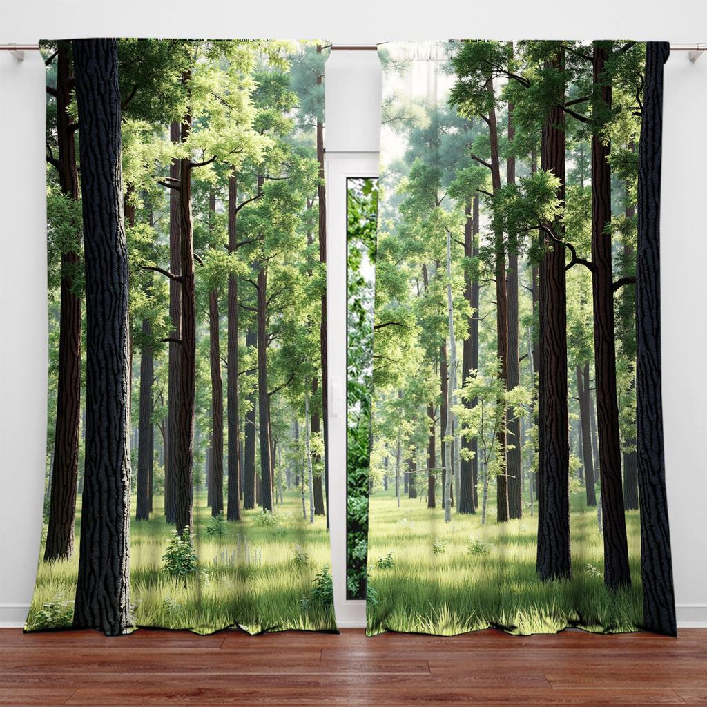 2pcs Healing Green Forest Pattern Curtains Distinctive Printed Curtains Suitable for Gifting To Family and Friends