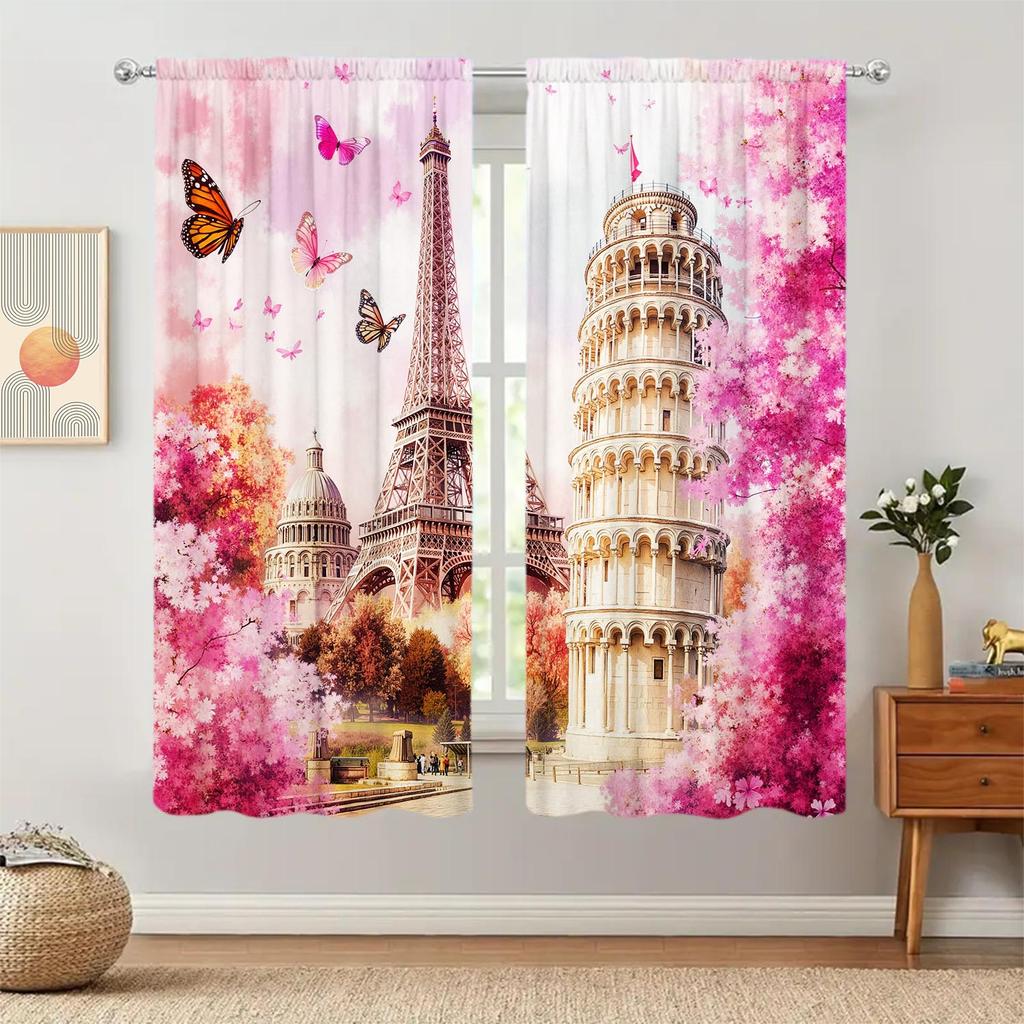 Шторы с 2 панелями «Цветущая сакура» и «Эйфелева башня» Универсальный дизайн, подходящий для любого стиля Создание умиротворяющего жилого пространства