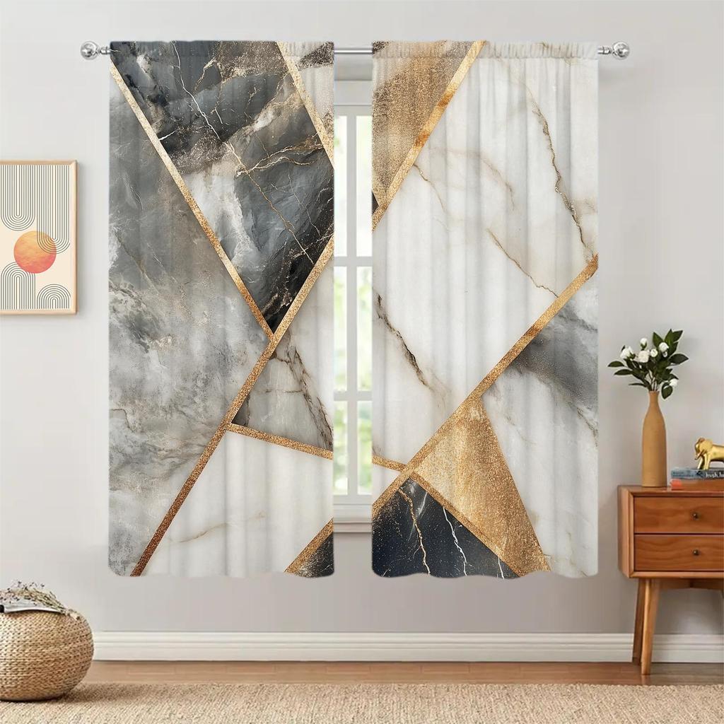 2 Panels Gold Foil Marble Pattern Window Curtains Versatile Design Suitable for Any Style Creating a Peaceful Living Space