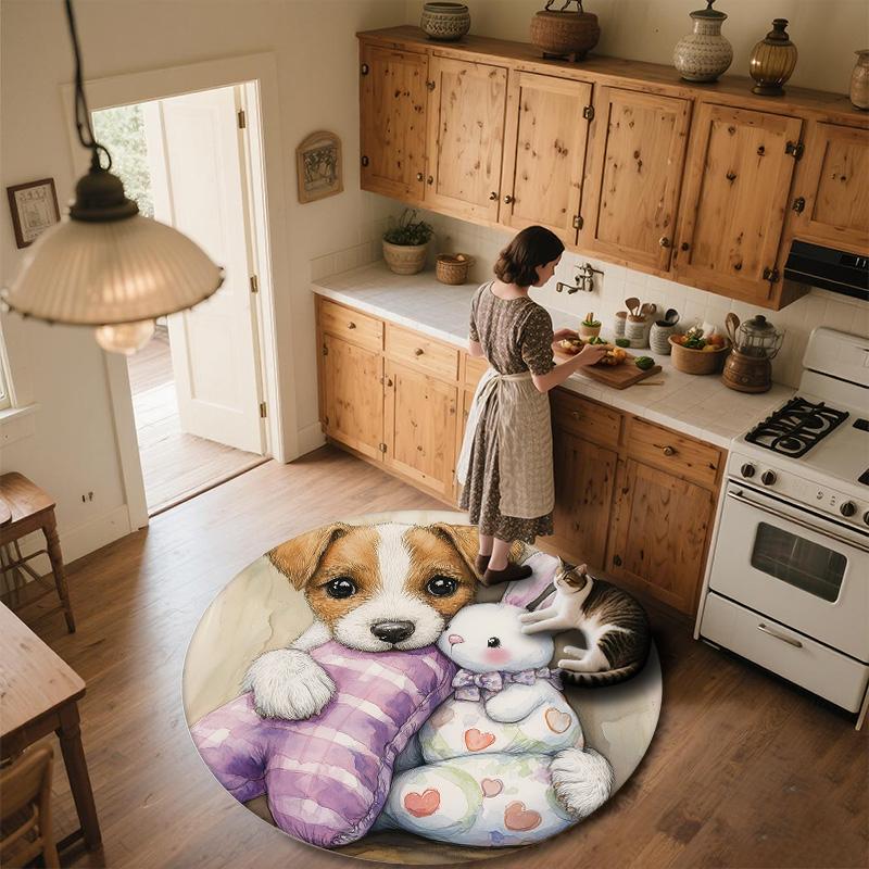 Plush Puppy,Round Area Rug,Carpet Rug for Living Room Bedroom Sofa Playroom Decor,Non-slip Floor Mat