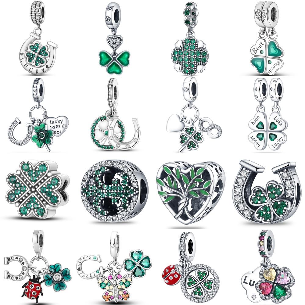 Copper Lucky Four Leaf Clover Series Charms Beads Fit Original Fine Braceletsdiy Jewelry Gifts Accessory