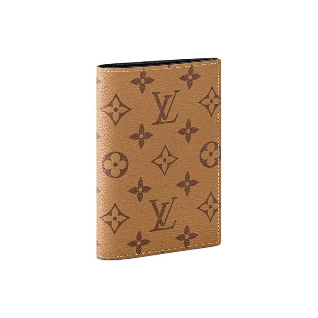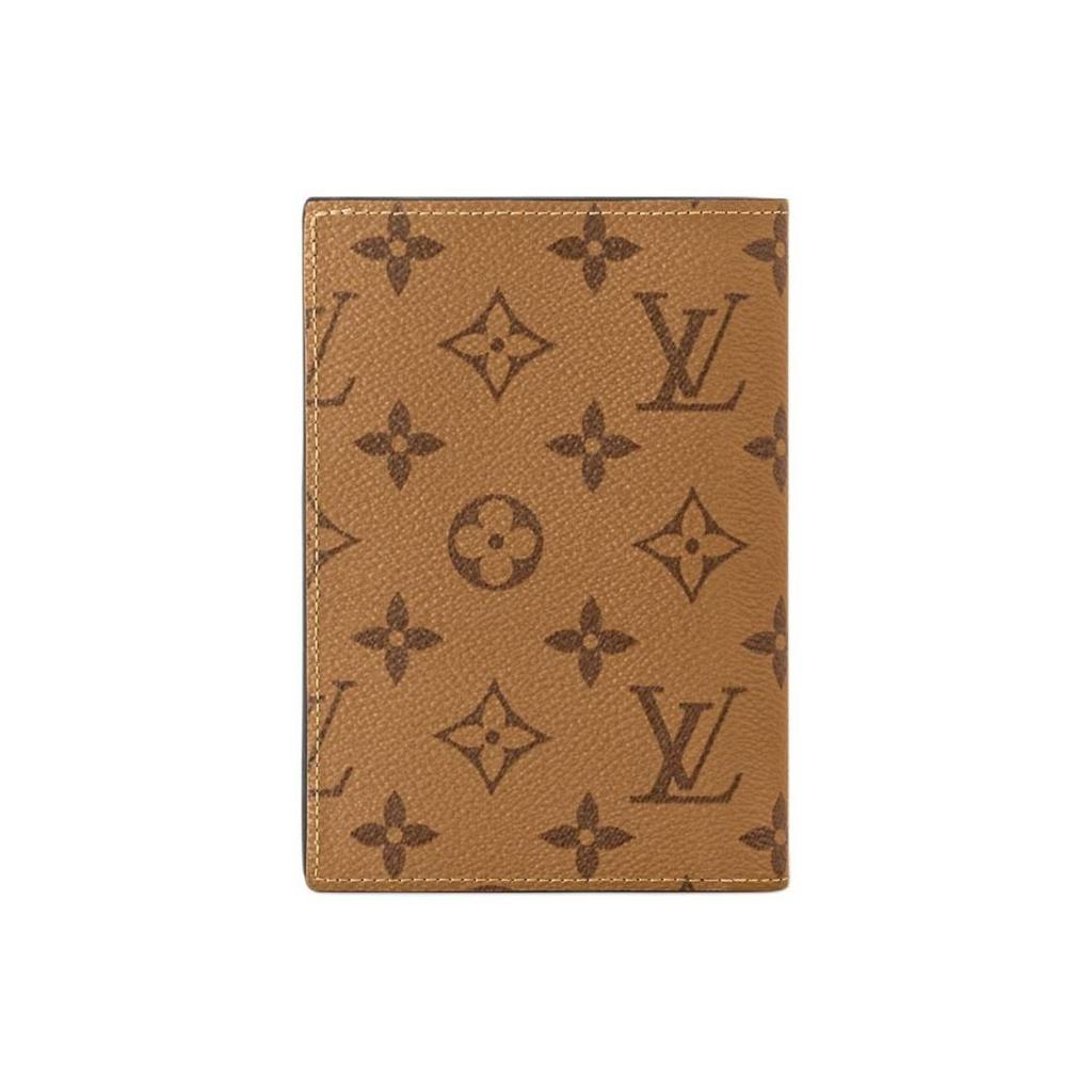 LOUIS VUITTON MONOGRAM REVERSE Brand-Printed Flap Closure Coated Canvas Passport Holder Unisex Style Khaki