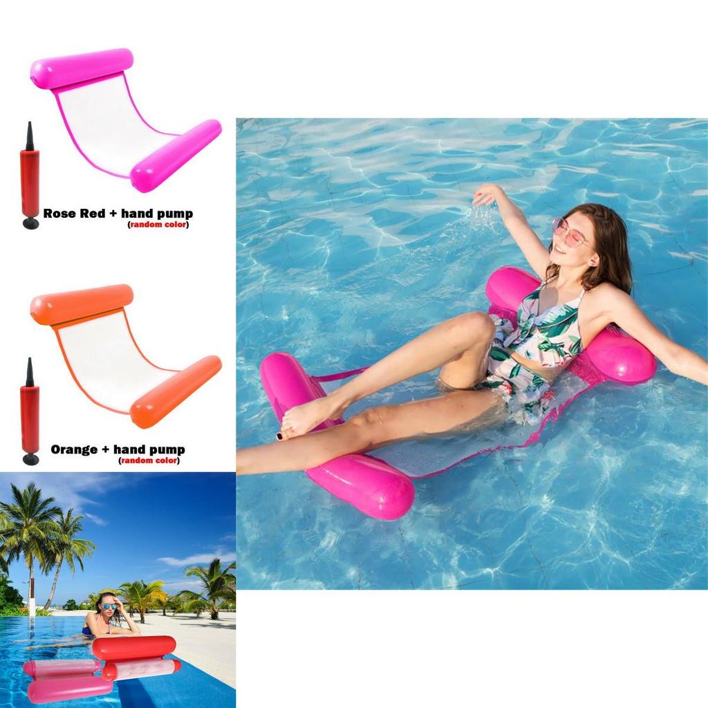 4. Вы можете быстро и легко надувать и сдувать водный гамак, Просто сверните его для удобного хранения или переносите, когда это необходимо.. Вы можете взять это в путешествие. Доступны в синем, красном, розовом, желтом и оранжевом цветах.