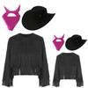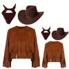 3Pcs Cowboy Costume for Kids Unisex, Fringe Vest Set with Hat & Bandana, Western Cowgirl Halloween Dress Up Outfit