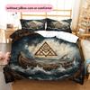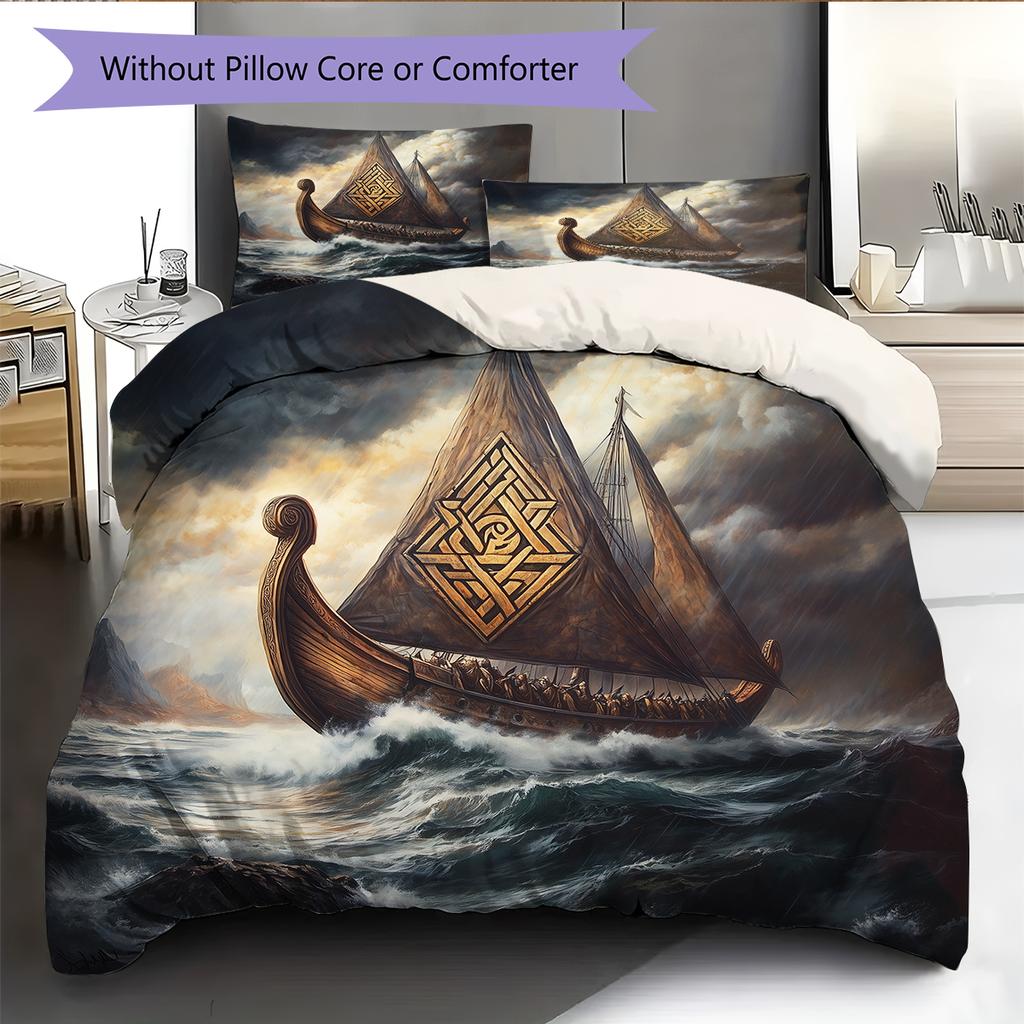 Постельное белье с узором «Драккар викингов» Домашний декор Подарок на день рождения (1 пододеяльник + 2 наволочки, без наполнителя)