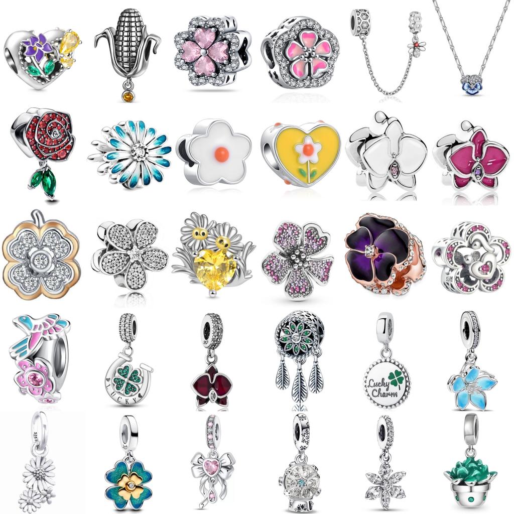 Медные Разноцветные Цветы Четырехлистник Бабочка Шармы Бусины Подходят для Оригинального Браслета Изысканные Украшения Сделай Сам