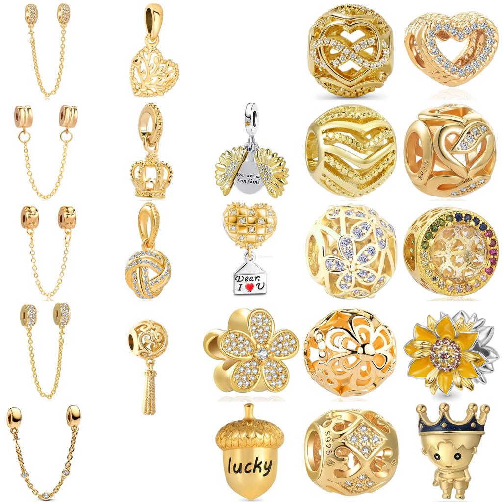 Шарм-корона из сосновых шишек с покрытием из 18-каратного золота, подходит для оригинального браслета, сияющий бусина, сделай сам, женские украшения, подарок, медный брелок, украшения, подарок