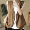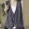 Женский льняной жилет Летний повседневный без рукавов Кардиган Куртка Свободный тонкий Повседневный жилет на пуговицах Женская уличная одежда Жилет Пальто