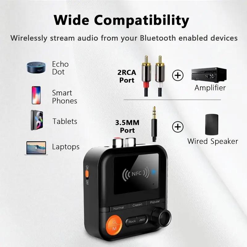 2 In 1 Bluetooth 5.2 Audio Transmitter Receiver 5 EQ Modes 3.5mm AUX RCA Jack Stereo Wireless Adapter for TV PC Car Kit Speaker