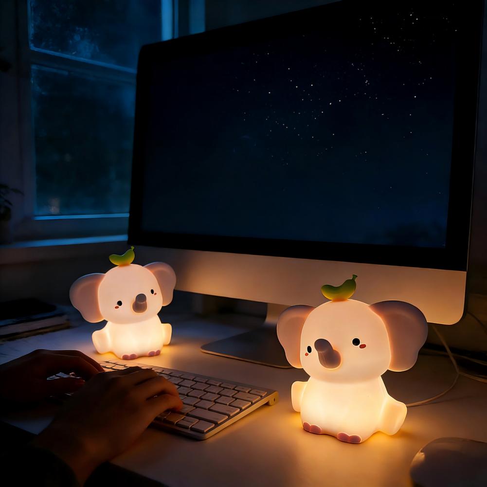 Elephant Night Light Silicone Dimmable Touch Control Night Lamp 2-Level Dimmable Rechargeable Auto-Off Timer Night Lamp