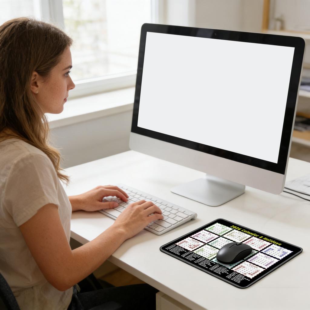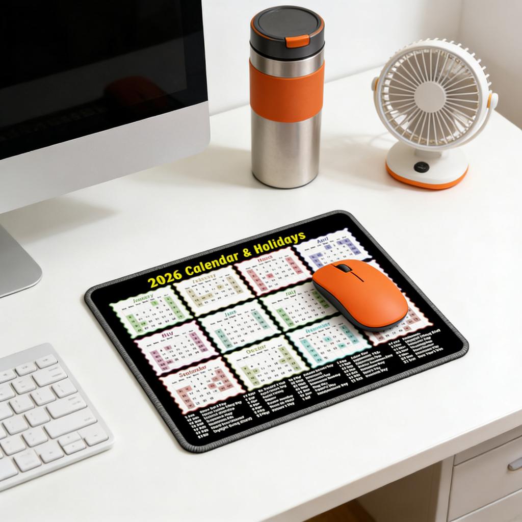2026 Calendar Mouse Pad, Desktop Accessory, Non Rubber Base, Smooth