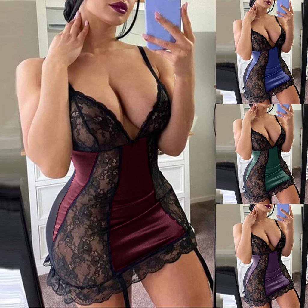Женское Кружевное Пэчворк Платье Ночная Рубашка С Бантом Нижнее Белье