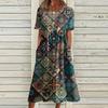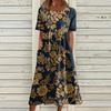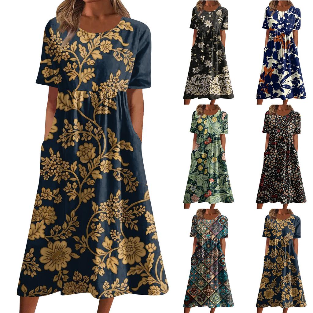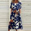 Жен. Повседневные платья Платья с принтами Летние платья С принтами Плиссированные платья-миди с круглым вырезом Классический Классический На открытом воздухе Повседневные С короткими рукавами Свободные платья