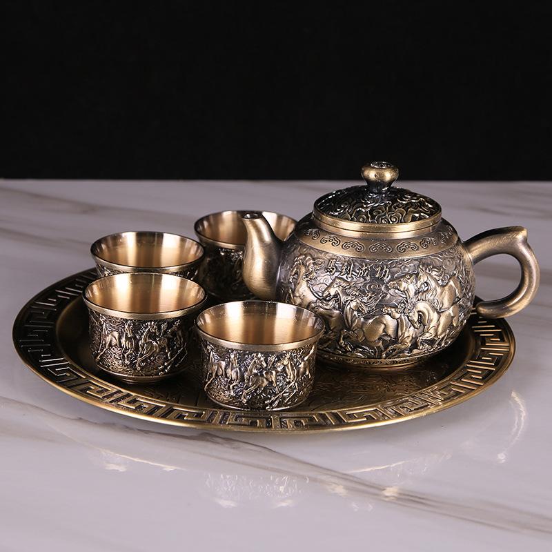 Серебряный чайный набор, бытовая высококачественная чашка для чая Гунфу, ретро поднос для чайника, чайный набор, практичные подарки — купить товар онлайн с бесплатной доставкой по всему миру!