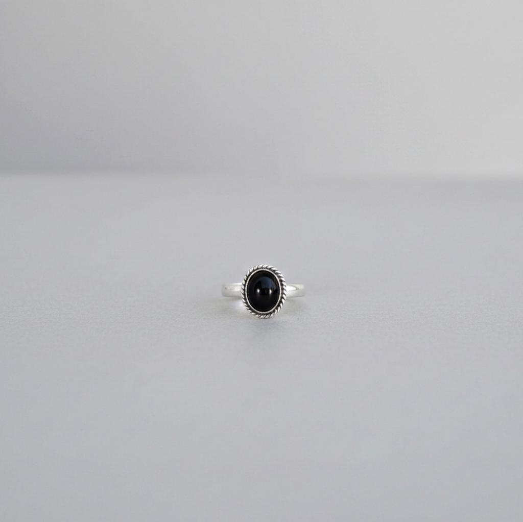 Black Onyx Rope Bazel Oval Statement Ring, 925 Solid Sterling Silver, Minimalist Everyday Wear Ring