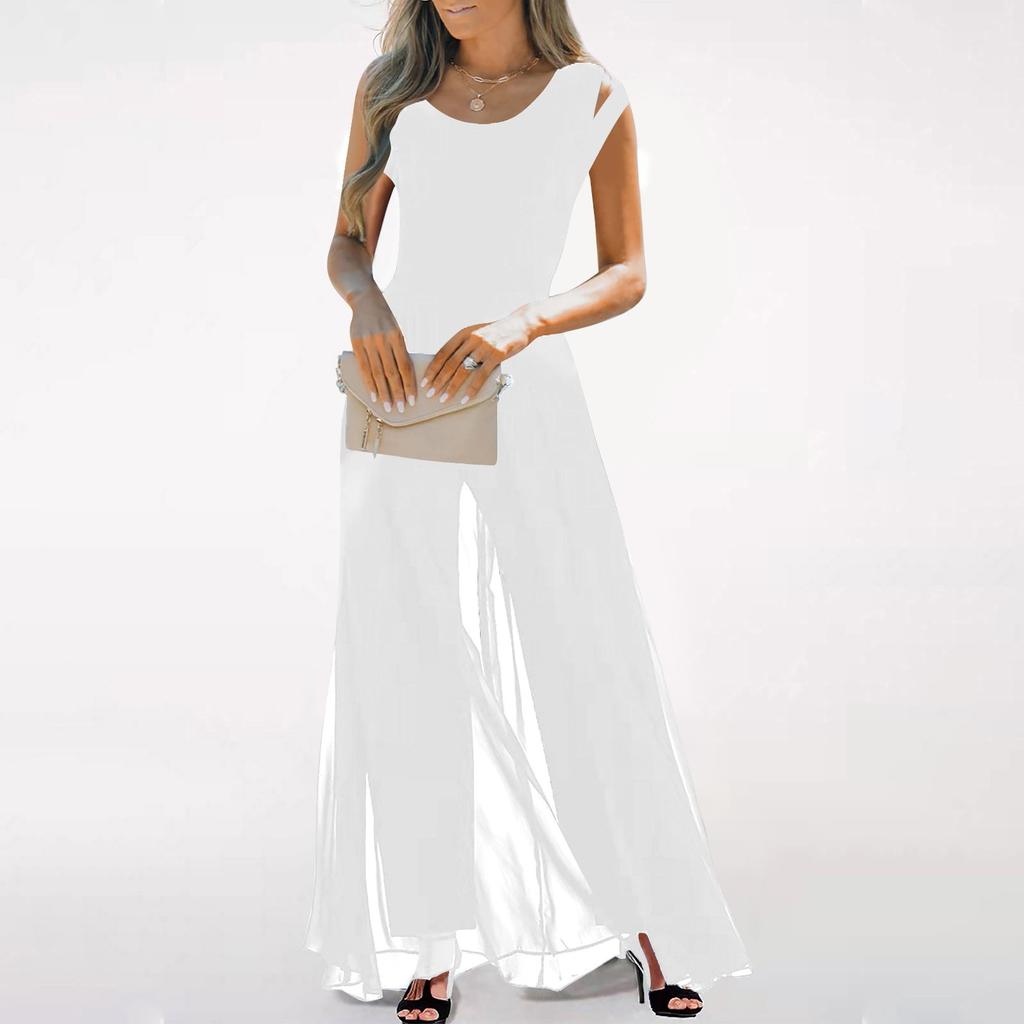 Женский повседневный шифоновый комбинезон без рукавов с высокой талией и круглым вырезом, свободный комбинезон, длинные брюки — купить товар онлайн с бесплатной доставкой по всему миру!