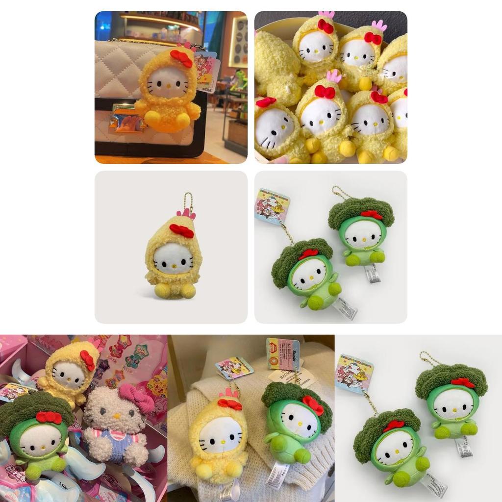 Cute Hello Kitty Broccoli Shrimp Plush Keychain Bag Charm Decoration
