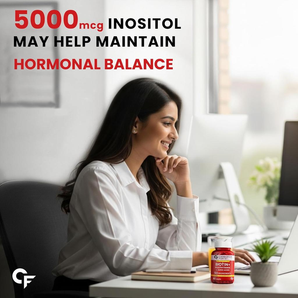 Carbamide Forte Biotin is a complete daily supplement for hair, skin, and nails. Packed with 50 multivitamin ingredients, it supports vitality, energy, and a healthy lifestyle. Easy-to-take veg tablets fit perfectly into your routine, helping you feel confident and nourished every day.