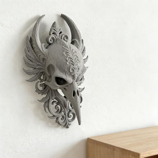 Юшэн Готический Ворон Череп Настенный Декор Жуткий Череп Ворона Подвесная Настенная Скульптура Искусственная Голова Животного Настенное Искусство для Спальни Гостиной Хэллоуин Украшение