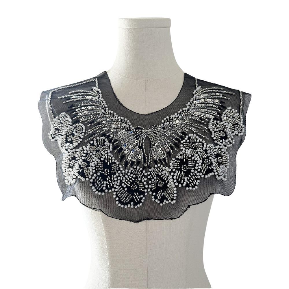Винтажный тяжелый кружевной шаль с воротником-ожерельем из бусин и пайеток, ретро воротник-жабо, вышитый передний воротник, Косплей