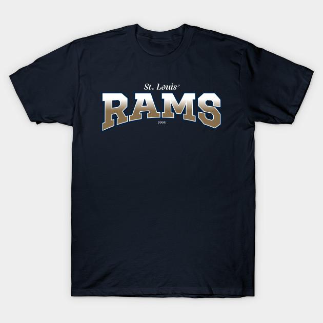 Men Black Print T-shirt Saint Louis Rams Retro No-Cut Transfer Paper Print Cotton Tshirt
