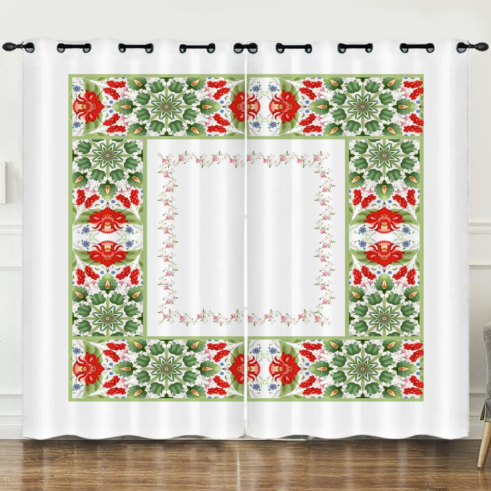 Curtain Ethnic Pattern Simple 3D Digital Printing Blackout Curtain Punching