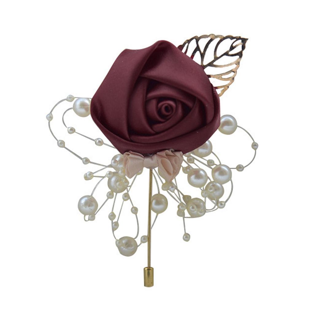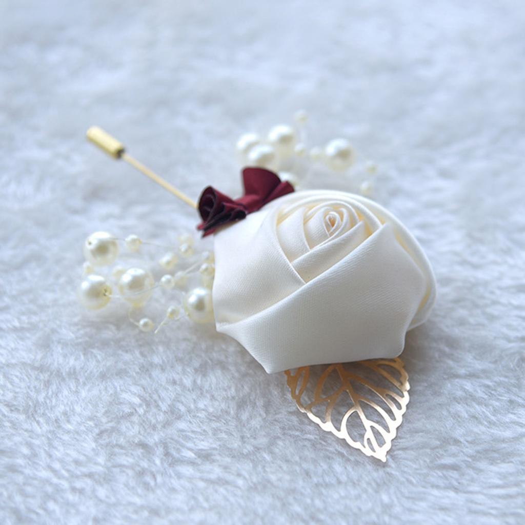 Церемония Свадьба Выпускной Корсаж Цветок Роза Брошь Булавки Жемчуг Бант Невеста Жених Цветы Бутоньерка Атласная Лента Аксессуары